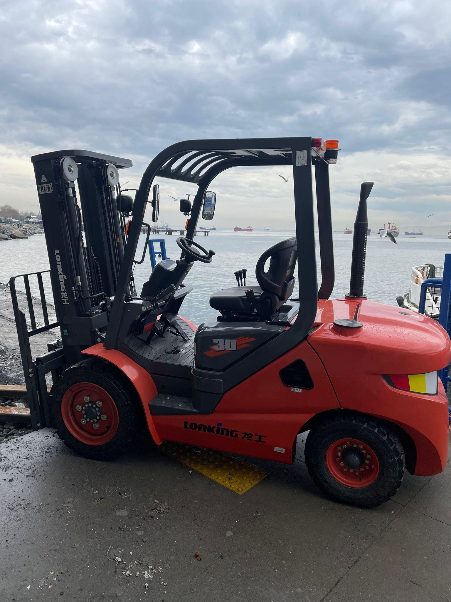 Sancak Forklift filosunda yer alan 3 ton dizel forkliftler, açık alanlar, sanayi sahaları, şantiyeler ve ağır zemin koşulları için özel olarak tercih edilen, yüksek motor gücüne ve sağlam şasi yapısına sahip makinelerdir.